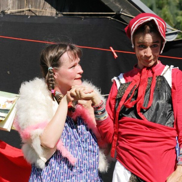Zwei Waschfrauen, die eine fest entschlossen, den Berg Wäsche aufzuhängen, die andere steckt fest in der Welt eines Märchenbuches. Rotkäppele, das will sie spielen, jetzt sofort! Wie lange kann sich die Arbeitsame dem Zauber der Märchenwelt verweigern? Da passiert es! Sie hat das Bild einer Prinzessin entdeckt, und dort hängt doch was glänzend Rosanes auf der Wächeleine, und schon ist sie Dornröschen! Was wird aber nun aus Rotkäppele? In einem herrlich witzigen Spiel lassen die beiden Clowinnen Veronika Kirchner-Rapp und Gabriele Scherrer aus dem Wäscheberg eine märchenhaft bunte Welt entstehen.
