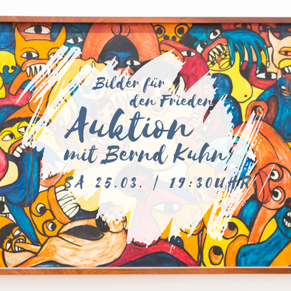 Herr Kuhn als Sammler, der Künstler Valentin Vitanov und weiter Künstler*innen des Kunstwerks Fellbach stellen ihre Bilder für die Auktion zur Verfügung.